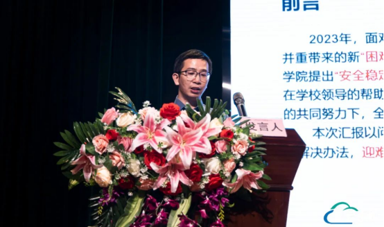 李多成副校长做育人工作发言 最后,广州市白云工商技师学院副校长李多成总结发言时,说到面对我校以初中学生为源主体的现状,针对就业与升学并重的培养需求,要持续紧扣“以学生为中心”的教育服务理念,总结2023年我校育人模式变革,明晰思政教育的工作定位与未来发展方向。在新的一年中,让我们秉承立德树人担使命,培根铸魂育新人。