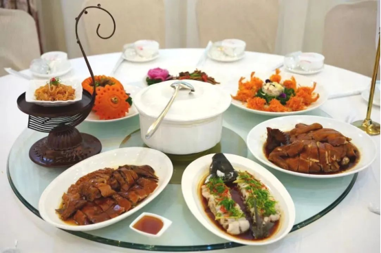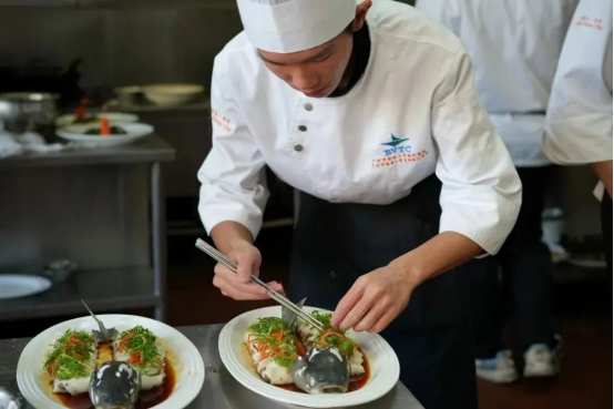 本次粤菜宴席制作,在旅游系教师组织与指导下,从器皿准备、原料切配、菜品制作、摆盘装饰、就餐服务、收尾工作等环节,都由在校烹饪专业学生完成,展示了旅游系学子在校期间的学习成果及综合能力。