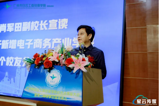 副校长肖军田代表校友总会宣读《关于新增电子商务产业学院等3个校友分会的决定》。新校友分会的成立,不仅发展壮大了校友组织,注入新的活力,有效整合校友资源,也构建了沟通平台,让更多校友携手并肩,推动校友会事业迈向新的高峰。 随后,副校长肖军田为各校友分会授牌。各系主任接过牌匾一致表示:将会带领各校友继续发扬母校优良传统,健全校友之间、校友与母校之间的交流平台,积极为社会做贡献。