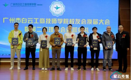 在白云工商校友们的共同见证下,举行了新一届理事会会长、副会长和秘书长授牌以及颁发理事会成员聘书仪式。
